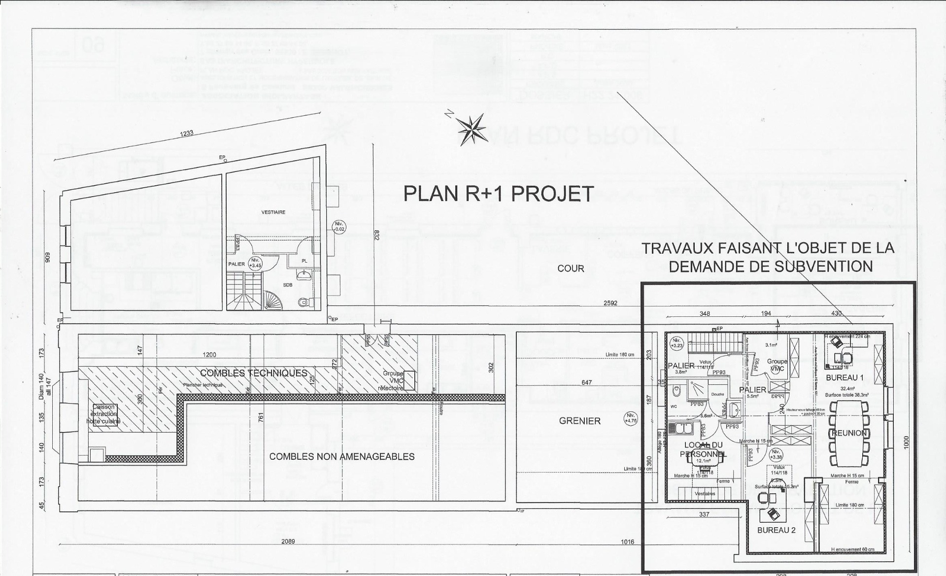 Pour cela, nous allons réhabiliter l'espace qui se trouve à l'étage de l'accueil de jour actuel. C'est un grenier d'une surface d'environ 100m² accessible par un escalier directement dans l'accueil de jour. Nous y créerons une salle de réunion, deux bureaux, une salle de bain et WC ainsi qu'une salle pour le personnel.