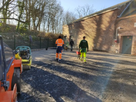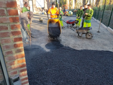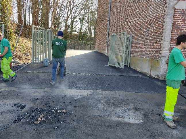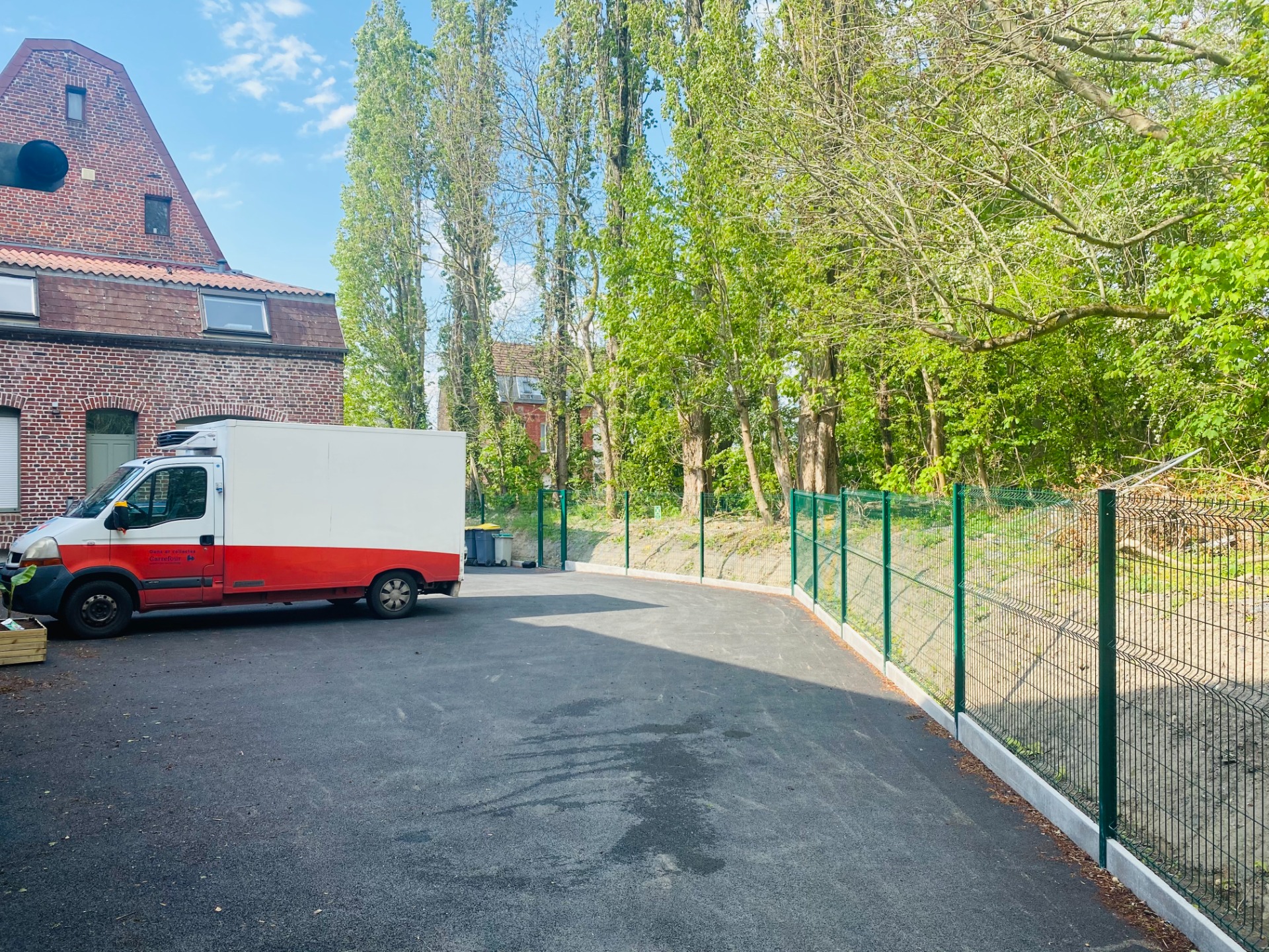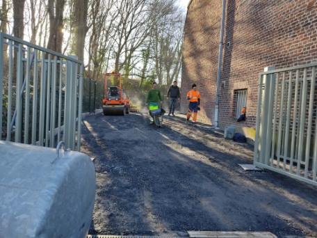 La cour a elle aussi été refaite. Une clôture a été posée et la cours a été macadamisé.